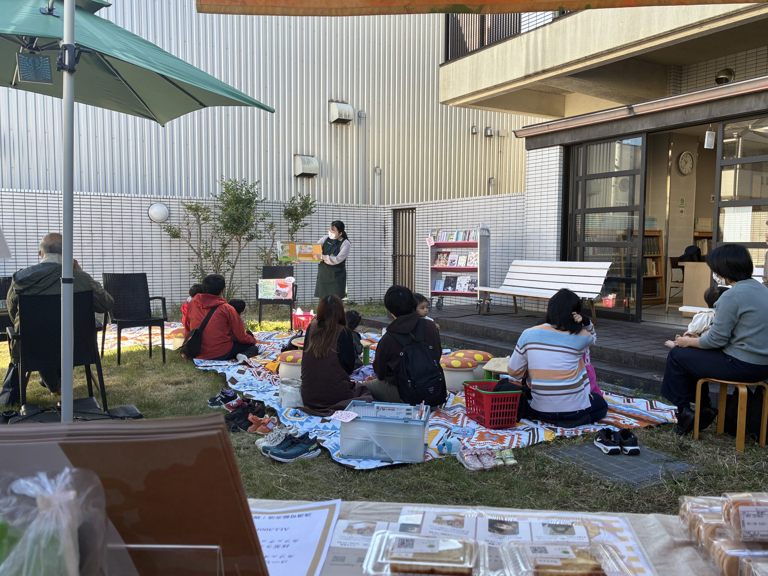 普段は使われていない中庭でコーヒーやクッキーの販売をしながら、子どもたちが遊べるスペースとしてテントやシートが置かれていました✨きのこ🍄の椅子がとってもかわいくて、そこで遊ぶお子さんたちの姿もとってもかわいかったです〜〜^^❤️