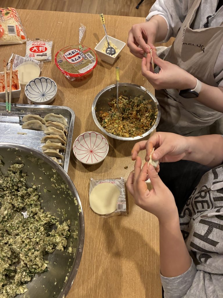 初めて、餃子を作る子もいたりして、みんなでわいわいしながら作る、あの時間いいですよね〜〜^^