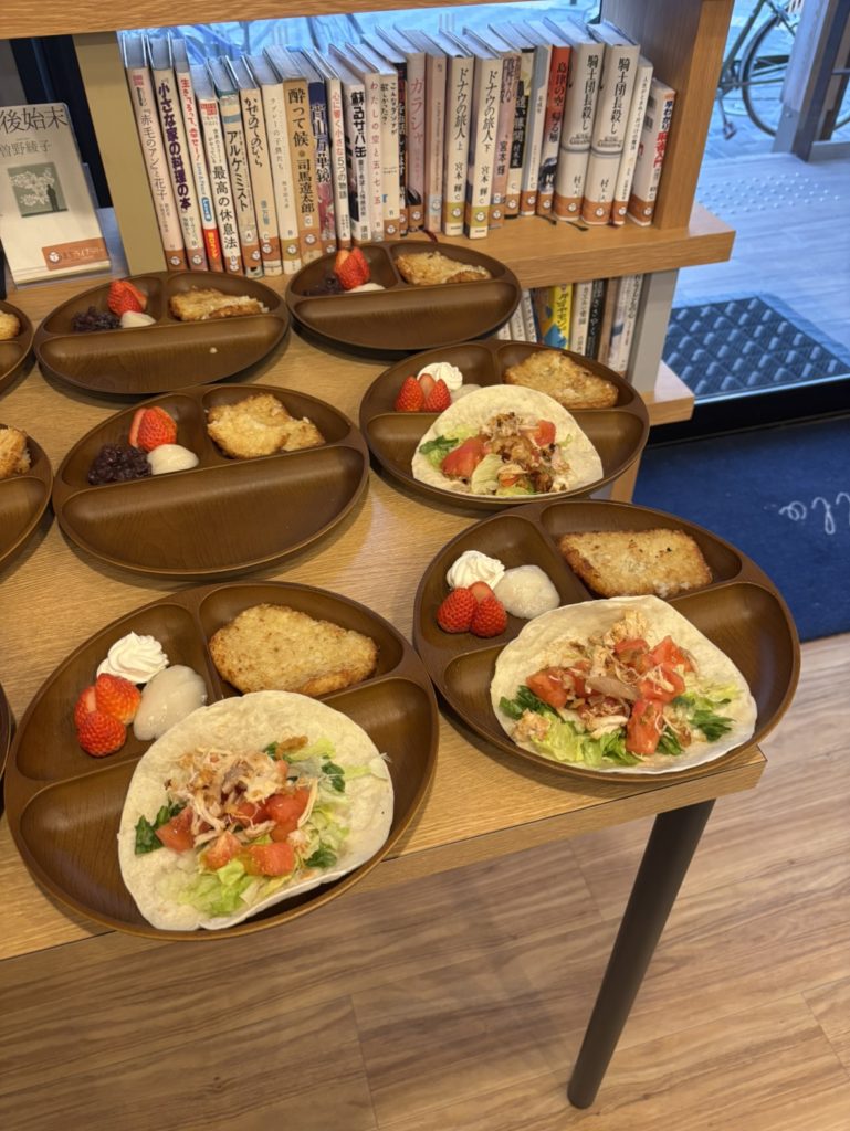 タコス、ミネストローネ、ハッシュドポテト、いちご大福風でした✨